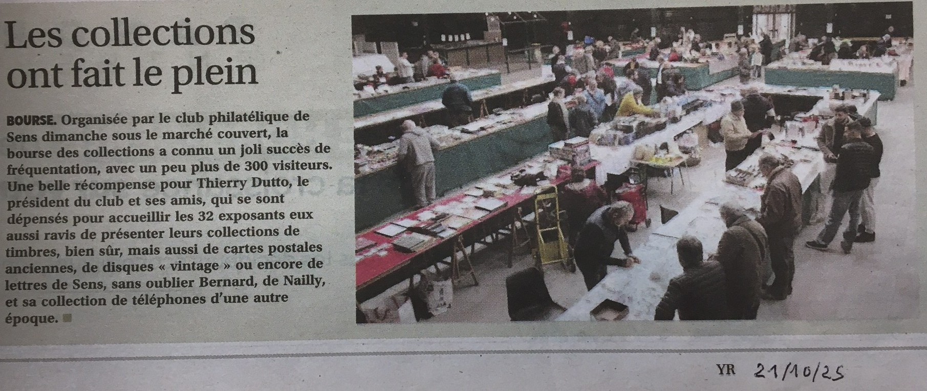 Bilan Bourse multicollections : Publié dans l'Yonne Républicaine du 21 octobre 2025 : YR 21 octobre 2025