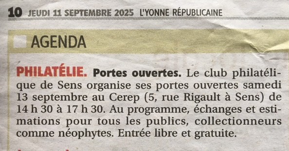 Bourse multicollection 2022 : publié dans l'Yonne Républicaine le 26 septembre 2022 : YR 3 bourse 3