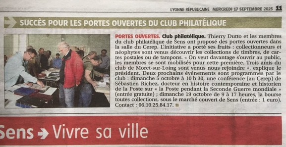 Interview Thierry Dutto sur les activités du CPS : La Téle de l'Yonne le 12 septembre 2025: À Découvert – À la rencontre du Club philatélique sénonais. - La télé de l'Yonne!
